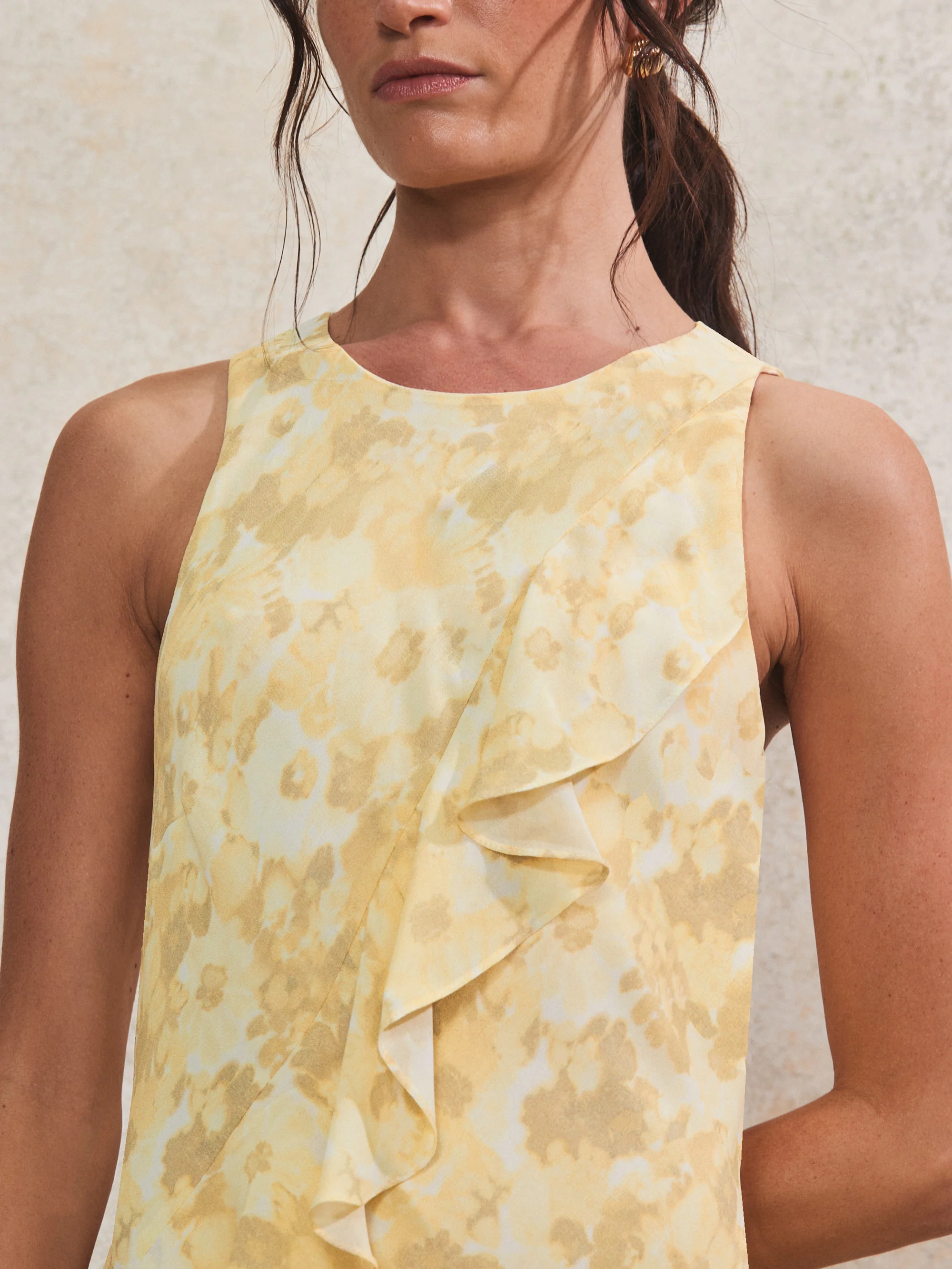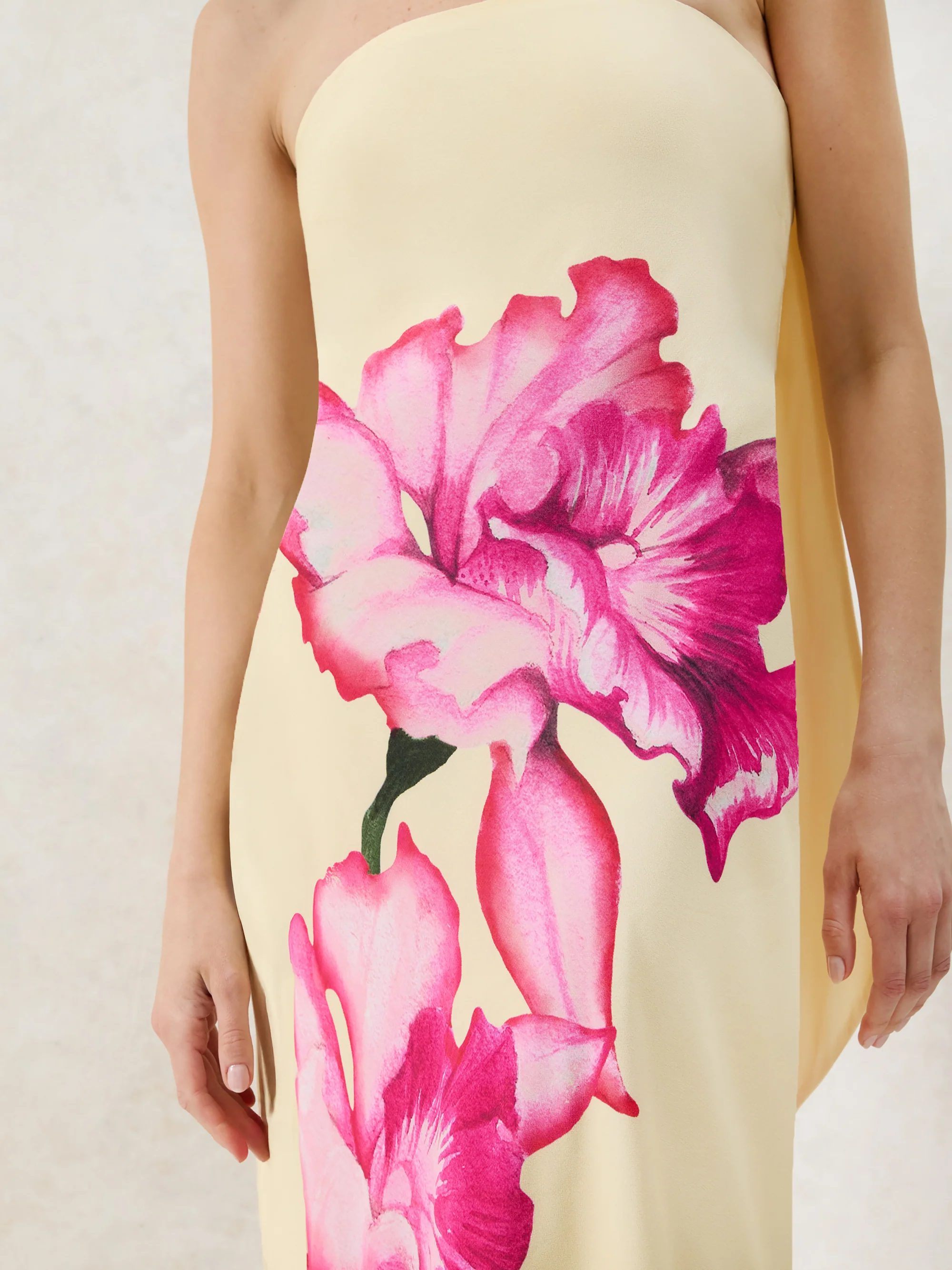 Aurora Yellow Floral Scarf Detail Bandeau Dress