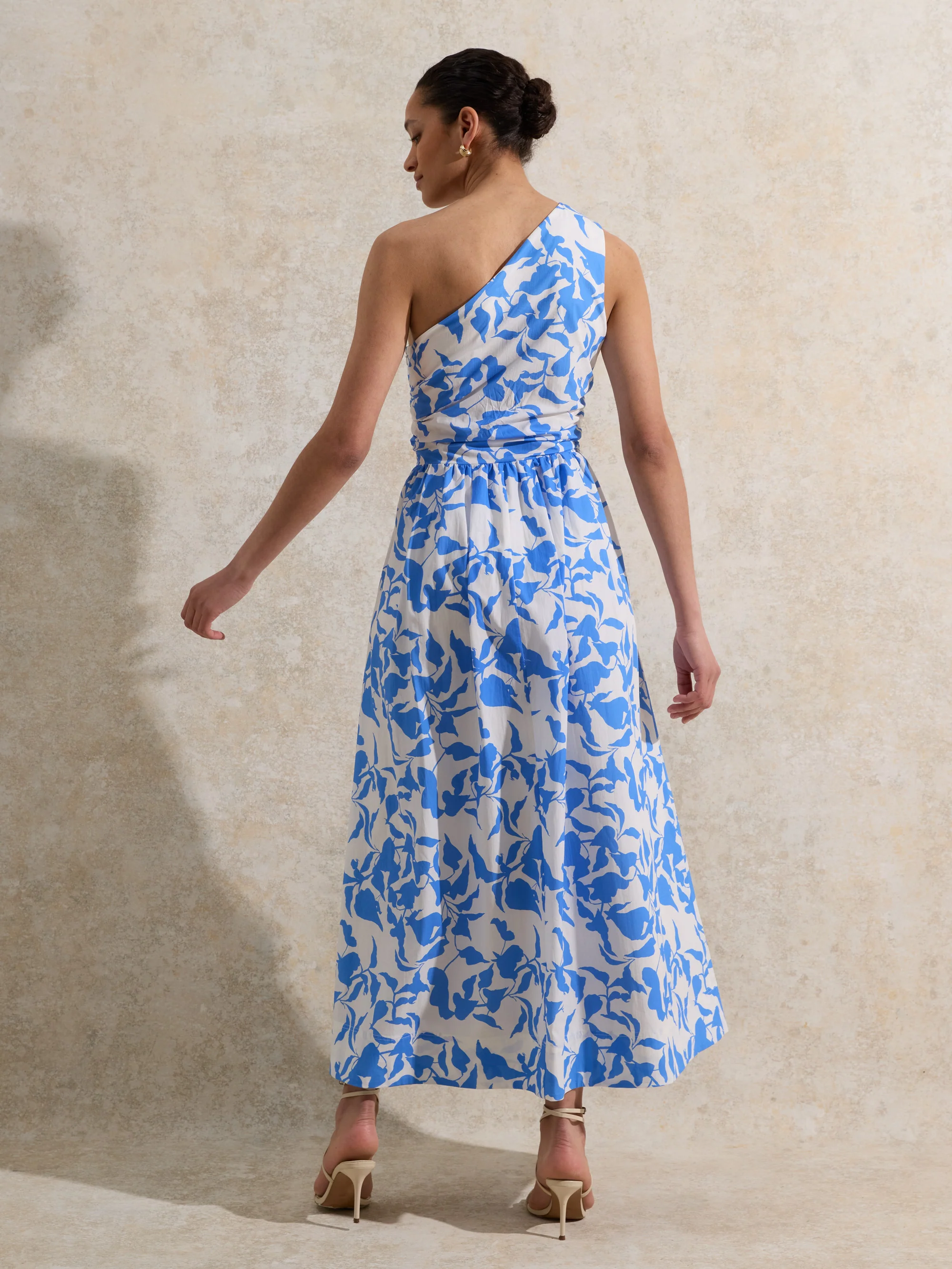 Aubrey Blue Leaf-Print One-Shoulder Dress