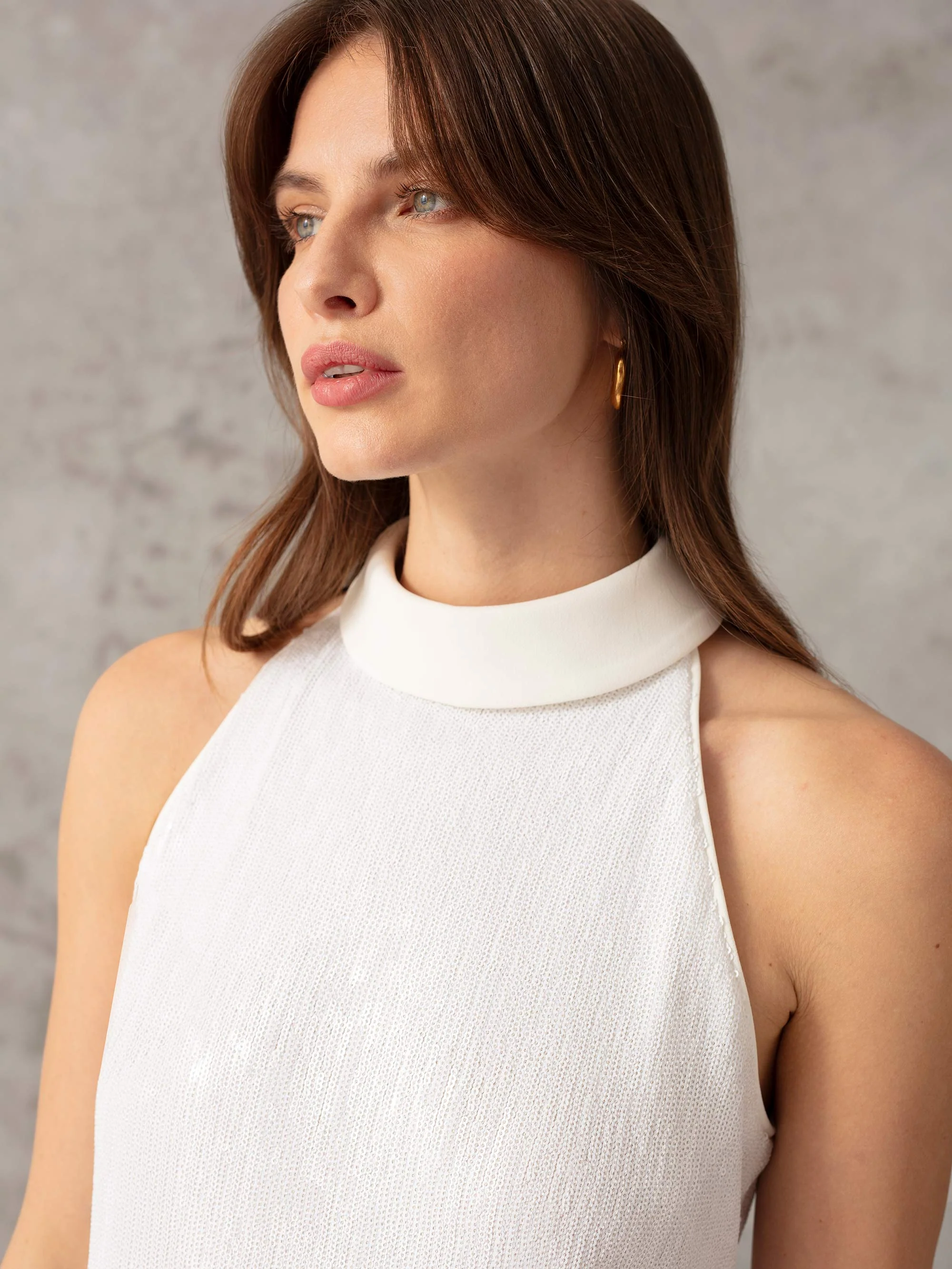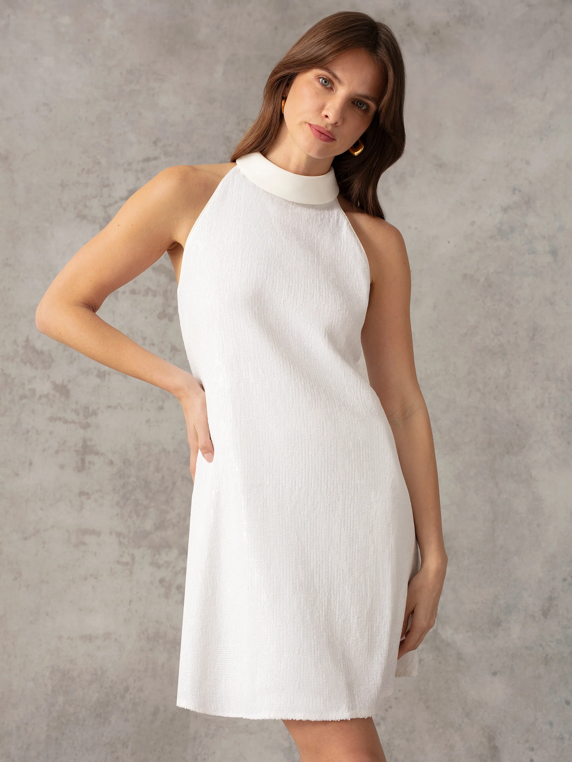 White Sequin Halter Neck Short Dress