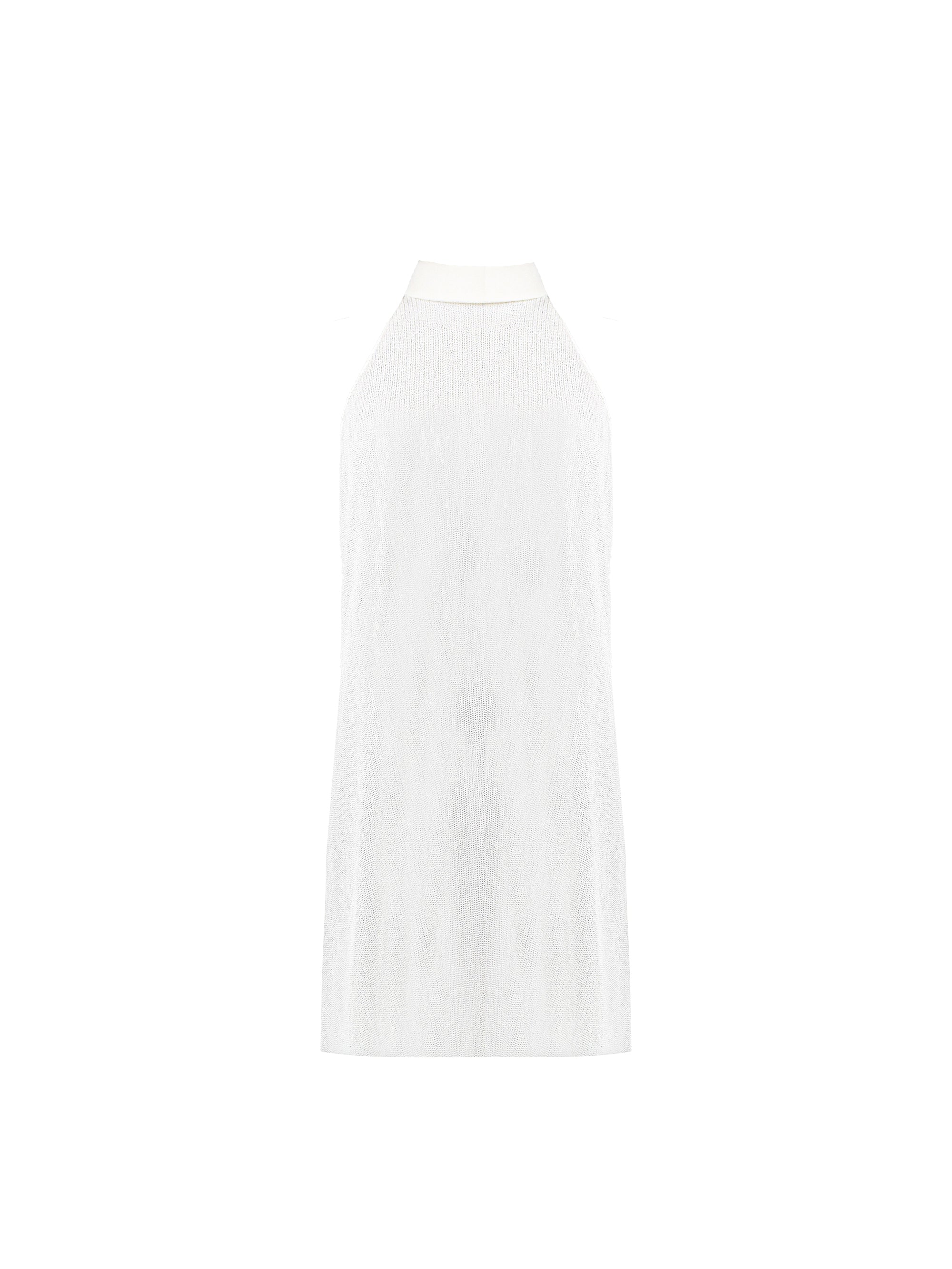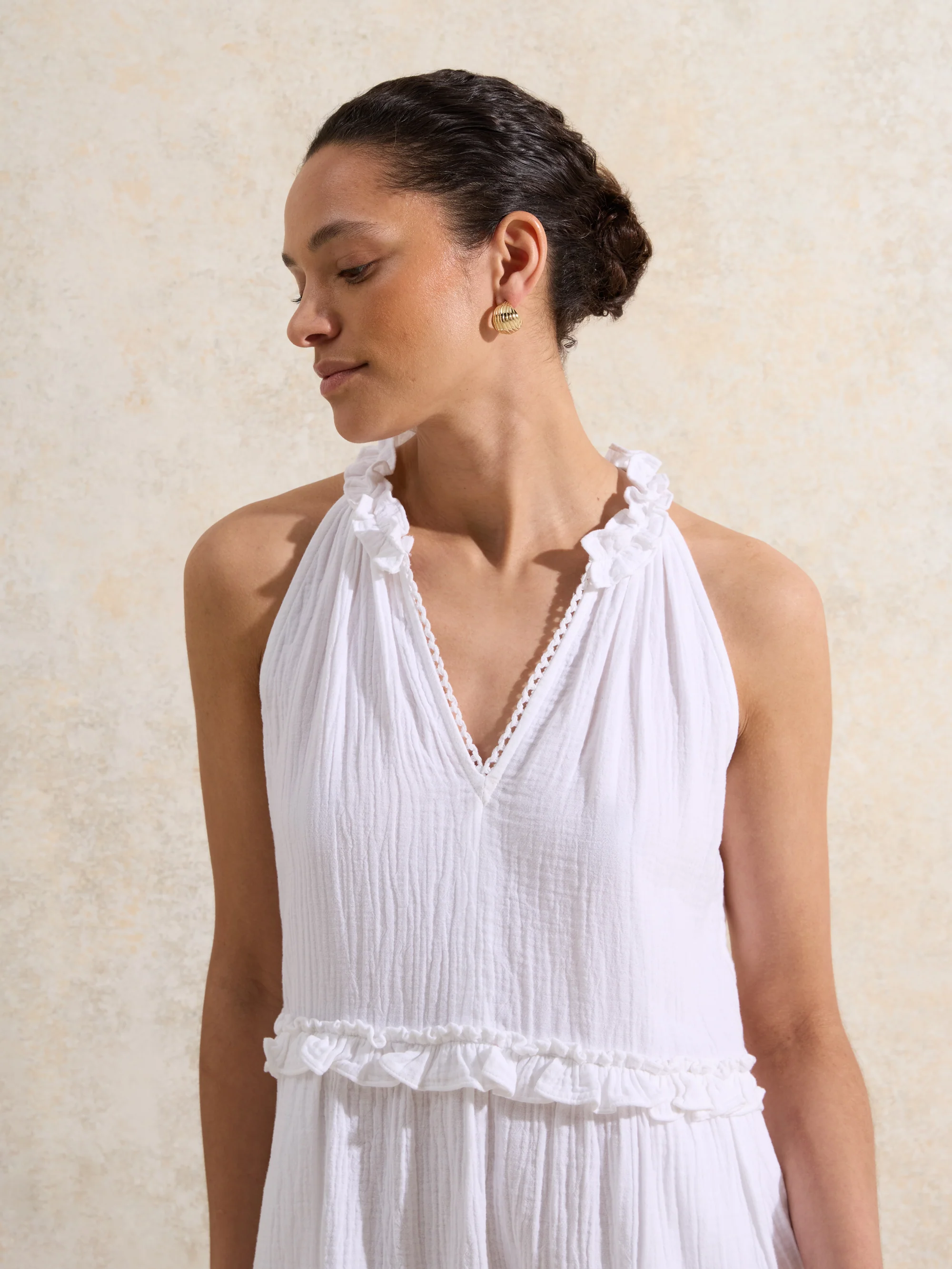 White Frill-Detail Halterneck Cheesecloth Mini Dress