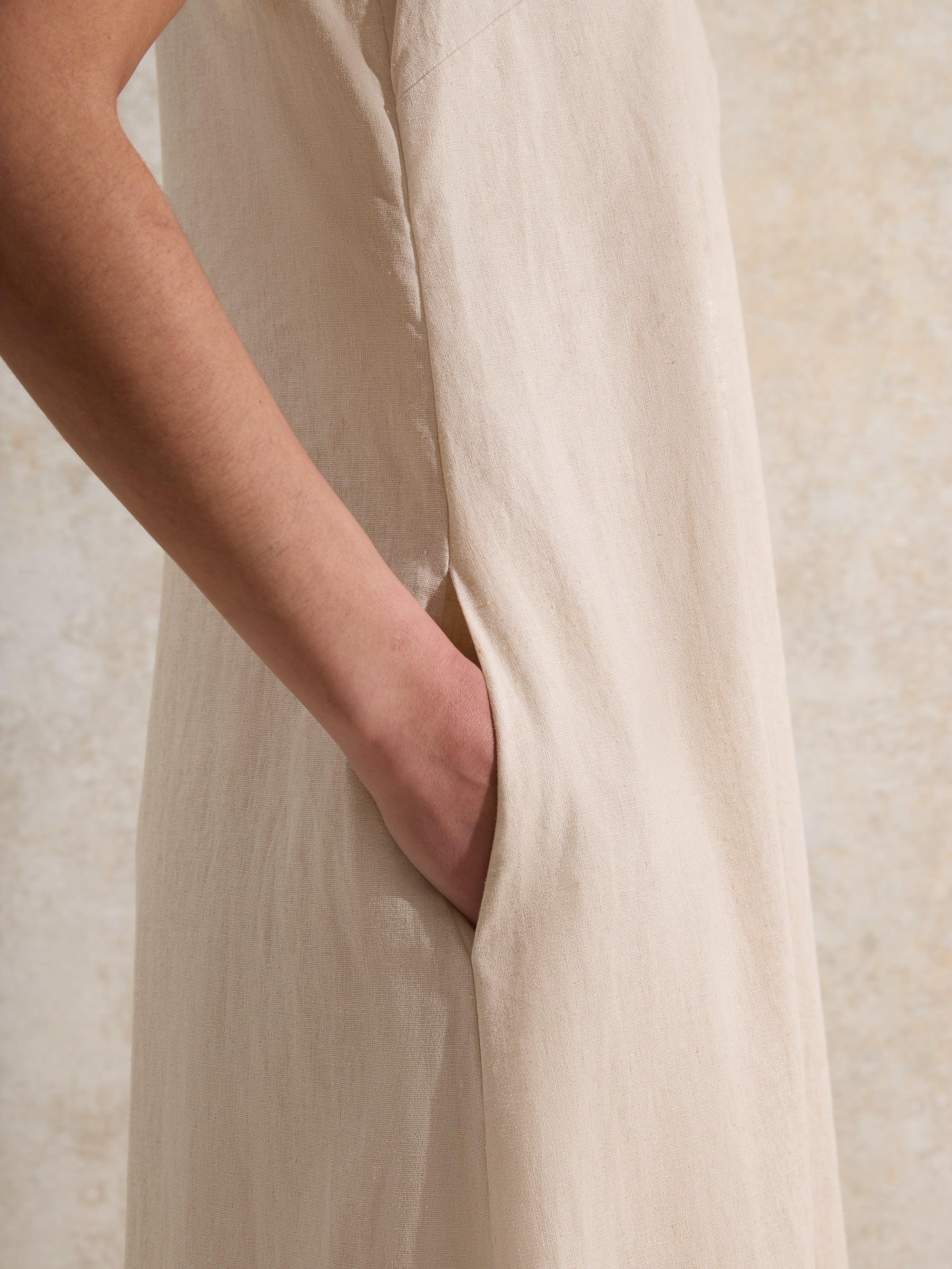 Ecru Piped-Detail Linen-Blend Maxi Dress