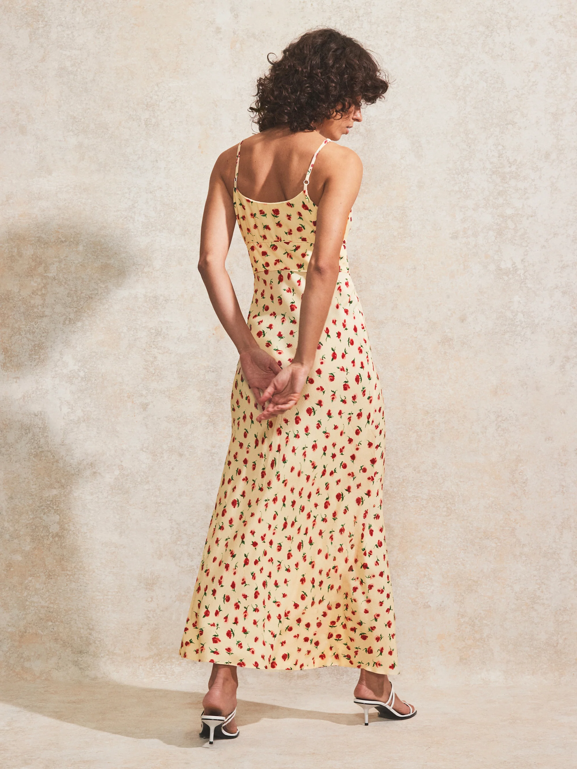 Petite Buttermilk Rose-Print Gathered-Bodice Cami Dress