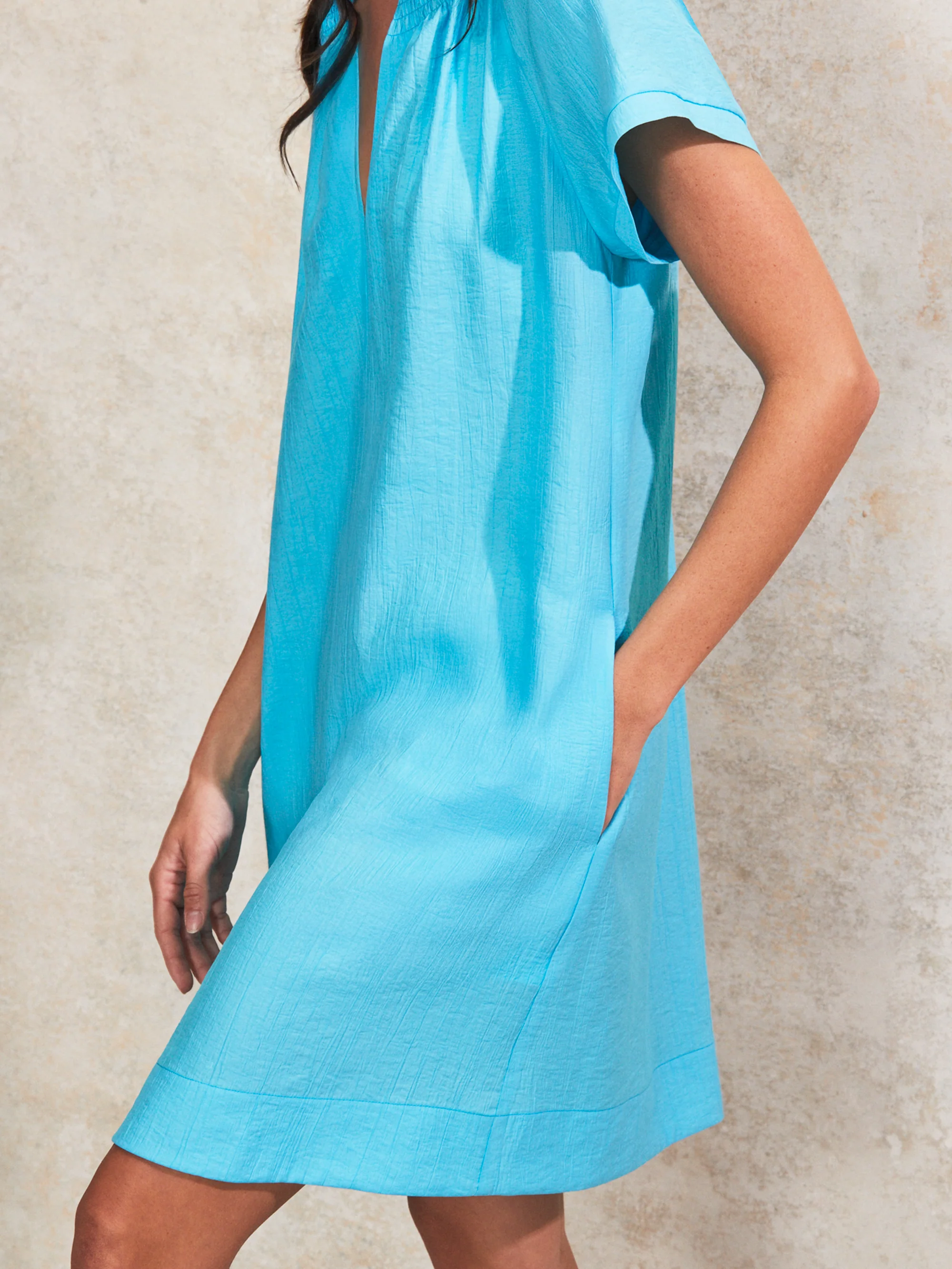 Aqua Gathered-Detail Short Dress